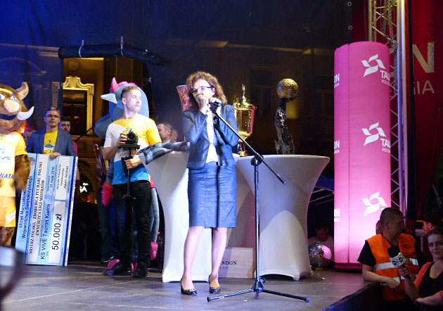 Wojewoda Agata Wojtyszek gratulowała piłkarzom ręcznym Vive Tauron Kielce zwycięstwa w Lidze Mistrzów 2015/2016. Uroczysta feta z udziałem kieleckich szczypiornistów odbyła się na kieleckim rynku.