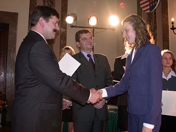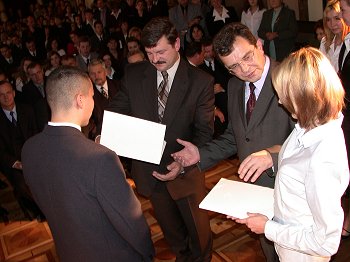 Jarosław Kalinowski- Wicepremier, Minister Rolnictwa i Rozwoju Wsi oraz Włodzimierz Wójcik - Wojewoda Świętokrzyski wręczyli dziś w Kielcach dyplomy dla stypendystów Prezesa Rady Ministrów