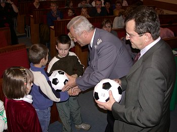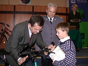 Włodzimierz Wójcik - Wojewoda Świętokrzyski wręczał nagrody laureatom konkursu "Bezpiecznie do szkoły", na który uczniowie szkół podstawowych z terenu województwa nadesłali blisko tysiąc prac plastycznych