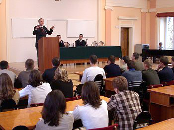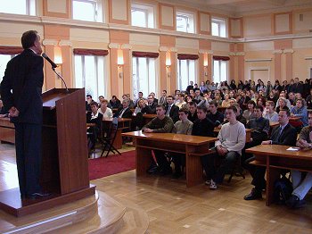 Grzegorz Kołodko - Wiceprezes Rady Ministrów, Minister Finansów wygłosił wykład dla studentów i licealistów w auli Akademii Świętokrzyskiej Wicepremier gościł w Kielcach na zaproszenie Włodzimierza Wójcika - Wojewody Świętokrzyskiego.
