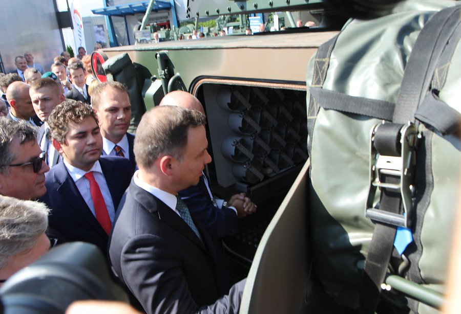 W Targach Kielce Prezydent zwiedził ekspozycje m.in. Polskiej Grupy Zbrojeniowej oraz Wystawę Sił Zbrojnych RP. Tradycyjnie, ostatniego dnia salonu obronnego wręczono nagrody „Defender”, przyznawane dla wystawców i producentów za najlepsze rozwiązania służące obronności i bezpieczeństwu. Andrzej Duda uhonorował konsorcjum firm: „Mesko” S.A. ze Skarżyska-Kamiennej, Wojskową Akademię Techniczną  w Warszawie oraz Centrum Rozwojowo-Wdrożeniowe Telesystem-Mesko z Lubiczowa specjalną Nagrodą Prezydenta RP dla produktu najlepiej służącego podniesieniu poziomu bezpieczeństwa żołnierzy Sił Zbrojnych. Firmy zostały wyróżnione za rakietowy zestaw obrony przeciwlotniczej „Piorun”.  - Gratuluję Kielcom takiego wydarzenia - powiedział Prezydent na zakończenie targów obronnych.