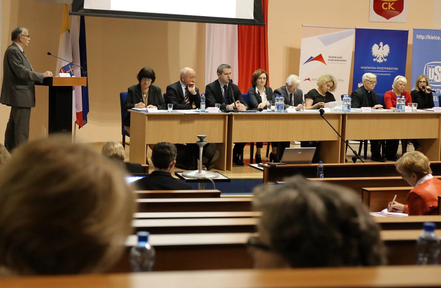 W spotkaniu wzięli udział specjaliści - prof. dr hab. Józefina Hrynkiewicz, przewodnicząca Rządowej Rady Ludnościowej oraz dr Agnieszka Piotrowska-Piątek, dyrektor Urzędu Statystycznego w Kielcach. W trakcie konferencji rozmawiano m.in. o aspektach dotyczących sytuacji demograficznej województwa świętokrzyskiego, wyzwaniach polityki społecznej wobec sytuacji demograficznej naszego regionu, migracji wewnętrznych i zagranicznych, sytuacji na rynku pracy w regionie oraz kondycji rodziny w kontekście potencjału rozwojowego województwa świętokrzyskiego. Jednym z tematów były również wyzwania polityki społecznej i gospodarczej wobec sytuacji demograficznej. – Chcemy wskazać dobre ścieżki do rozwoju rodzin i posiadania dzieci. Naszym pragnieniem jest aby potomstwo było naturalną koleją rzeczy, a nie sprawą nadzwyczajną – podkreśliła prof. Hrynkiewicz.