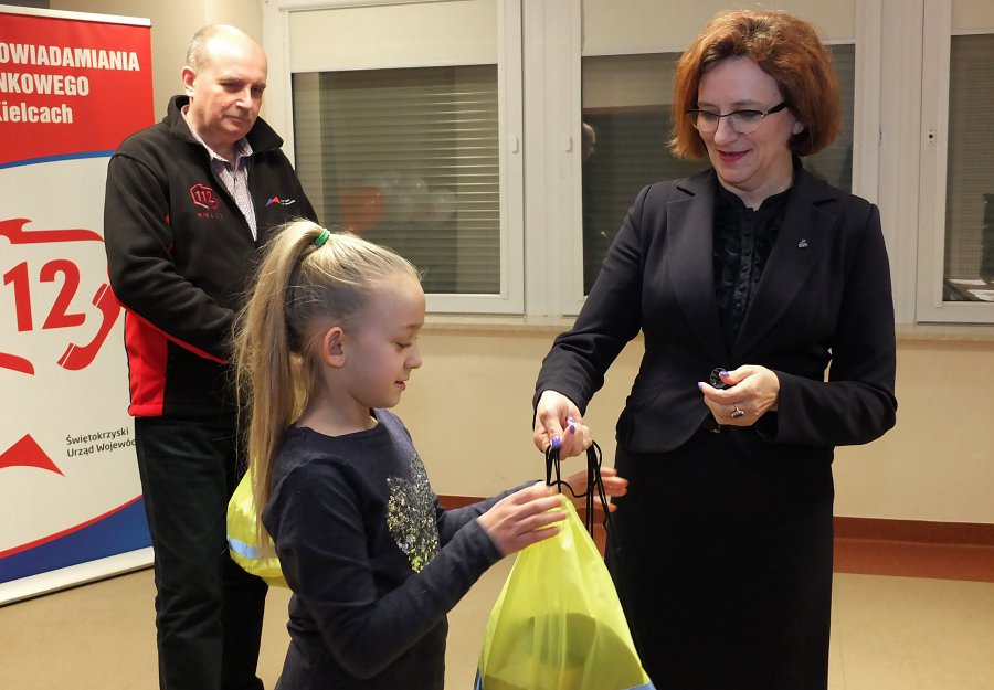 Młodzi laureaci konkursów plastycznych promujących wiedzę o numerze alarmowym 112 otrzymali nagrody od wojewody Agaty Wojtyszek. Spotkanie odbyło się w Centrum Powiadamiania Ratunkowego w Kielcach.