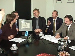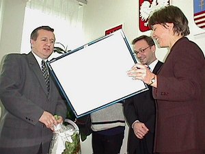 Z rąk Prezesa Zarządu Fundacji - Iwony Ryniewicz symboliczne czeki otrzymali przedstawiciele: Ostrowca Świętokrzyskiego oraz gmin: Bodzechów i Rytwiany. Łączna kwota dotacji wyniosła 141.300 zł, a pieniądze przeznaczone zostały na odtworzenie wyposażenia komputerowego, edukacyjnego oraz księgozbiorów bibliotek w 13 szkołach podstawowych i ponadpodstawowych. W uroczystości wzięli również udział m.in. członek zarządu Fundacji - Rafał Grodzicki, dyrektor Banku Handlowego w Kielcach - Ryszard Skowron i dyrektor Wydziału Ochrony Środowiska i Rolnictwa ŚUW - Sławomir Neugebauer.