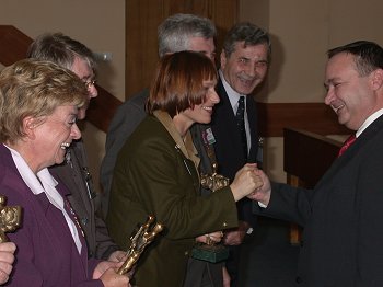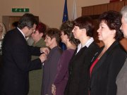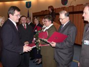 24 pracowników uhonorował Włodzimierz Wójcik - Wojewoda Świętokrzyski złotymi, srebrnymi i brązowymi Krzyżami Zasługi, a 12 najlepszych urzędników otrzymało z rąk Sławomira Neugebauera - Dyrektora Generalnego ŚUW Statuetki Służby Cywilnej. Listy gratulacyjne otrzymali pracownicy obchodzący jubileusze pracy zawodowej, uroczyście pożegnano również 6 osób przechodzących na zasłużoną emeryturę.