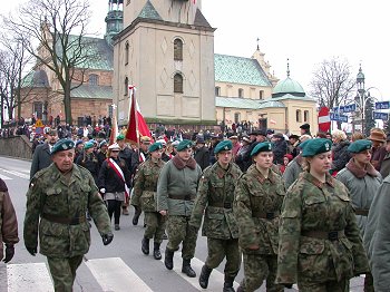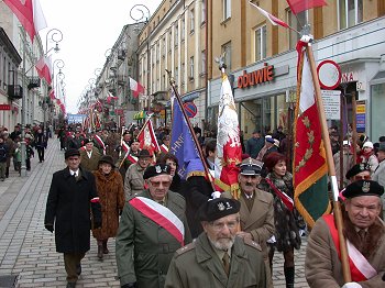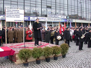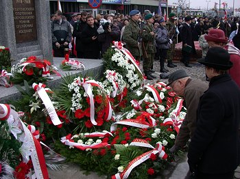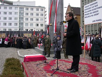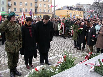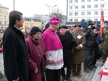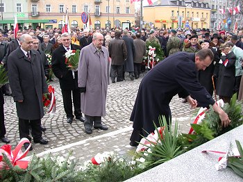 Włodzimierz Wójcik - Wojewoda Świętokrzyski powiedział m.in. "Niech ta uroczysta chwila pozwoli nam na wspomnienie i zadumę o tych, co odeszli w imię wolności. Im zawdzięczamy życie w suwerennym i niezależnym kraju. Im chylimy dziś czoła.Życzę nam wszystkim takiej odwagi i wytrwałości, z jaką polscy patrioci walczyli o niepodległość Ziemi Ojczystej. Oby przyszłe pokolenia z dumą patrzyły na nasze osiągnięcia, tak jak my jesteśmy pełni uznania i podziwu dla bohaterskich czynów bojowników o wolną i stabilną Polskę. (...) Przed Polską, przed nami - jej obywatelami ważne wyzwanie. Potrzeba nam konsekwencji, wytrwałości, mozolnej pracy i determinacji, by temu wyzwaniu sprostać. Potrzeba nam także otwartości, tolerancji, mądrych i rozważnych decyzji. Ale pod żadnym, pozorem nie możemy zmarnować żadnej szansy na rozwój, pozytywne przemiany i transformacje. Dlatego musimy szukać dialogu, płaszczyzn porozumienia i współpracy oraz merytorycznej, twórczej dyskusji zarówno na zewnątrz, jak i wewnątrz naszego kraju".
