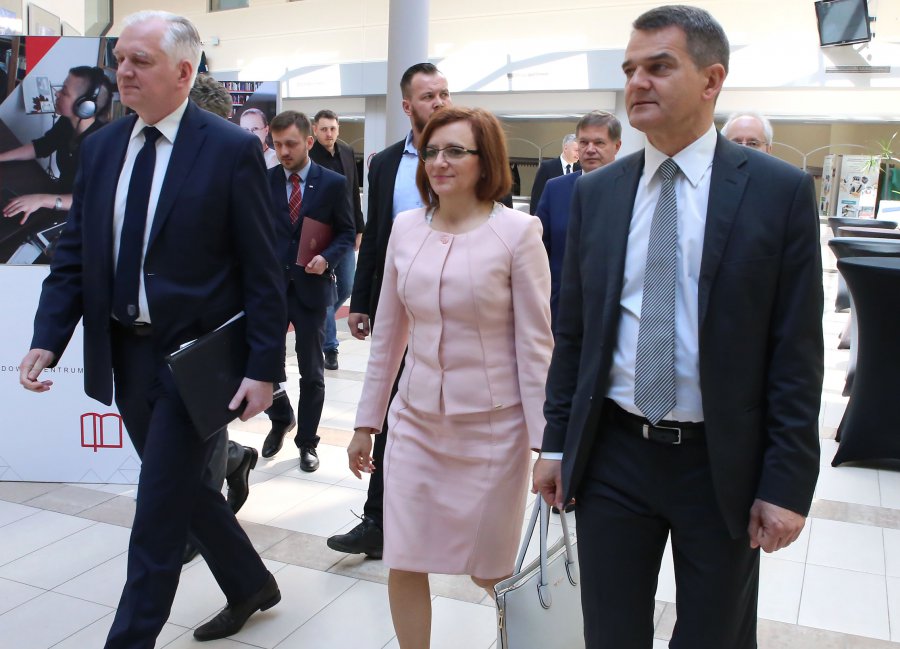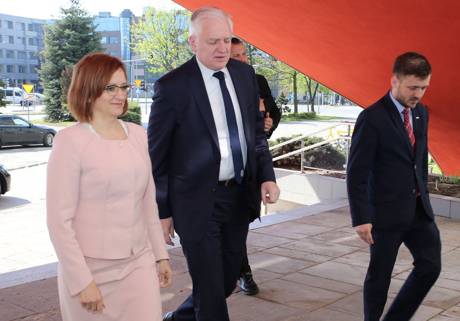 Przed wizytą na kieleckiej uczelni wicepremier Jarosław Gowin odwiedził urząd wojewódzki, gdzie spotkał się z wojewodą Agatą Wojtyszek.