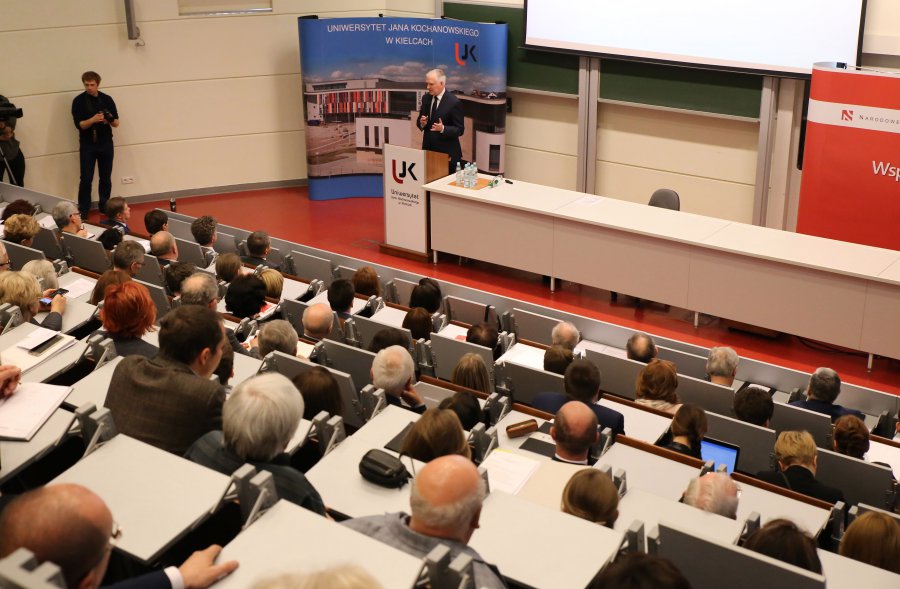 Jarosław Gowin wziął udział w sympozjum „Znaczenie systemu grantowego dla poprawy jakości badań w Polsce”, zorganizowanym na Uniwersytecie Jana Kochanowskiego w ramach piątej edycji Dni Narodowego Centrum Nauki. Jest to cykliczne przedsięwzięcie Narodowego Centrum Nauki, rządowej agencji wykonawczej finansującej projekty z zakresu badań podstawowych, które  - we współpracy z polskimi uczelniami  - zaprasza pracowników naukowych i administracyjnych do udziału warsztatach i spotkaniach poświęconych aktualnej ofercie grantowej.