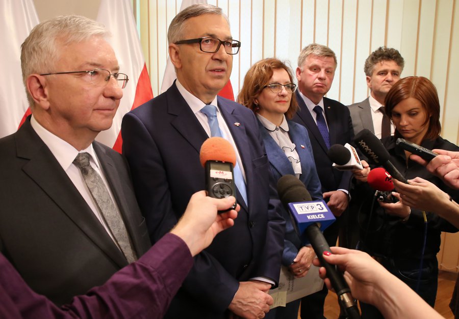 Konferencja prasowa z udziałem wiceministra rodziny, pracy i polityki społecznej Stanisława Szweda i wojewody Agaty Wojtyszek odbyła się w Świętokrzyskim Urzędzie Wojewódzkim.