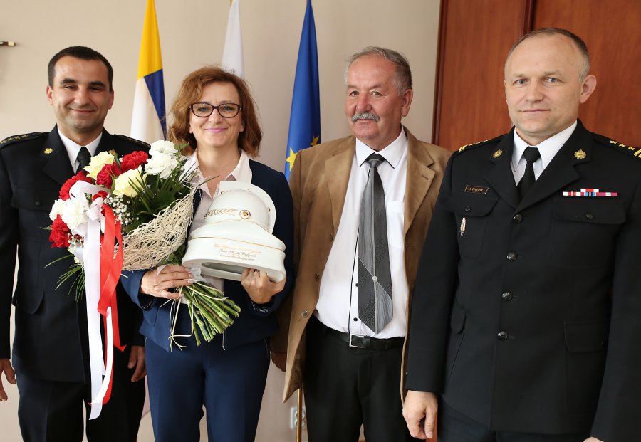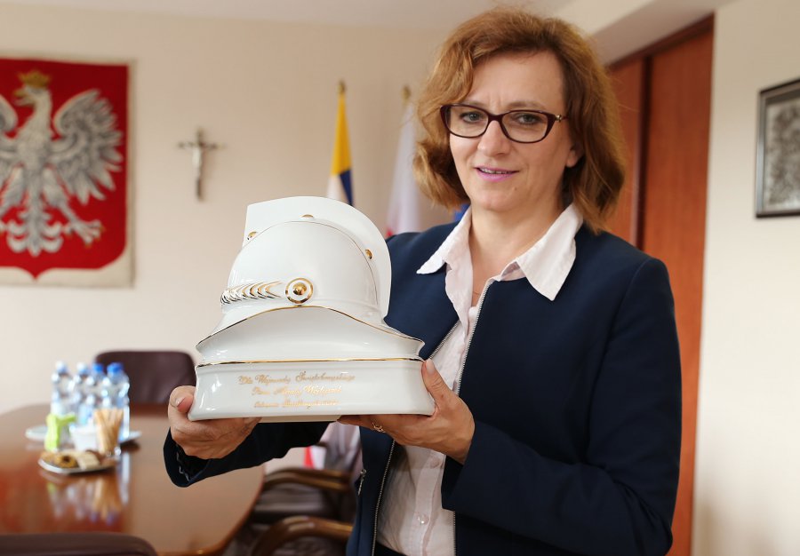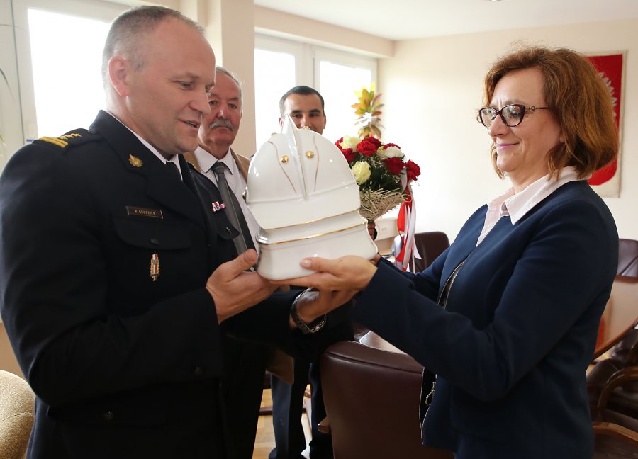 Rozmowy dotyczyły współpracy i ochrony przeciwpożarowej województwa świętokrzyskiego. Jako wyraz wdzięczności, w podziękowaniu za dotychczasową współpracę, wojewoda otrzymała od komendanta PSP w Ostrowcu Św. ozdobny hełm strażacki, wykonany z ćmielowskiej porcelany.