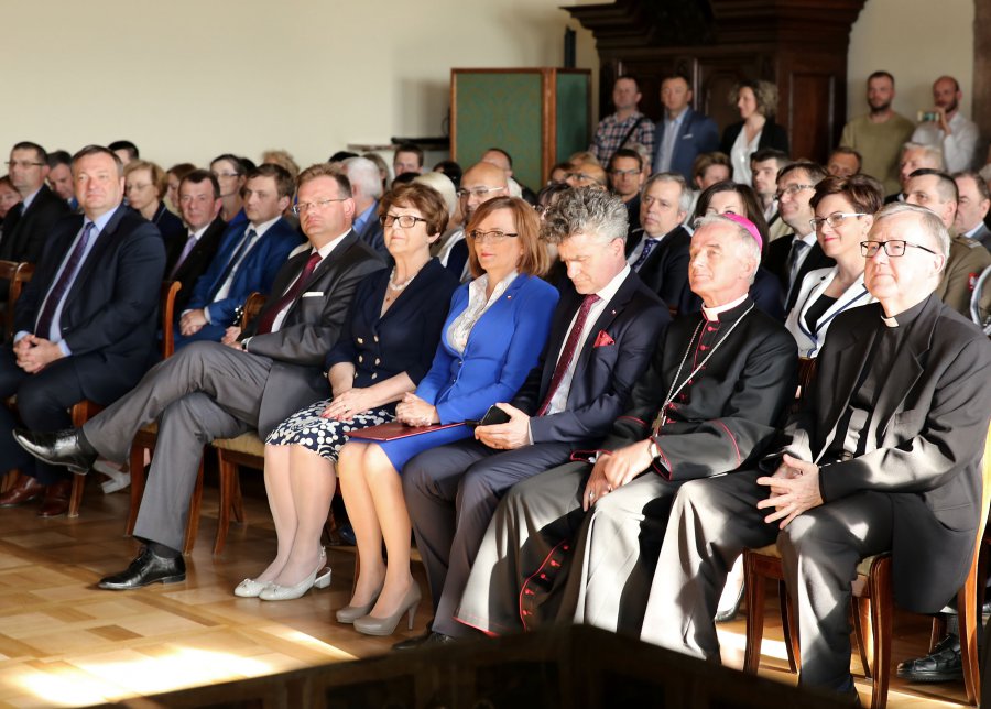 - Mam przyjemność zaprosić Państwa na wystawę „Pielgrzym Tysiąclecia” poświęconą pamięci Świętego Jana Pawła II. Przez 27 cudownych lat pontyfikatu był zawsze z nami. Był blisko nas, a jednocześnie najbliżej Boga. To dzięki Ojcu Świętemu tak mocno czuliśmy i nadal czujemy obecność Stwórcy. Żadne słowa nie wypowiedzą naszej wdzięczności, ale naprawdę możemy czuć się wyróżnieni, bo mamy pewność, że On czuwa nad nami – mówiła wojewoda. Papieża Polaka wspominali JE Ksiądz Biskup Marian Florczyk oraz ministrowie Jan Józef Kasprzyk i Marek Tombarkiewicz.