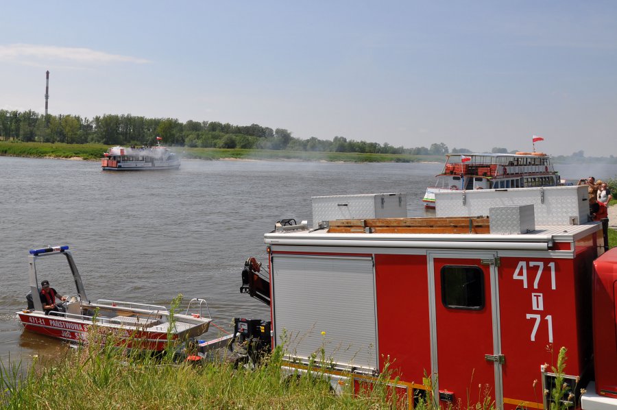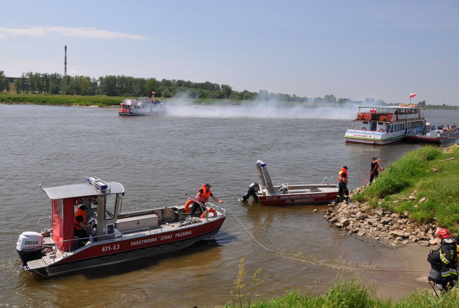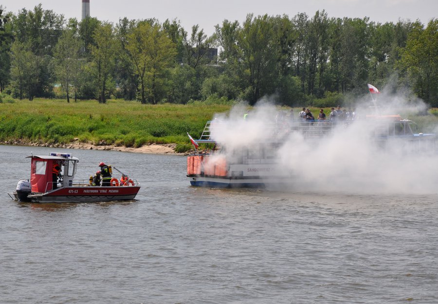 Swe umiejętności zaprezentowała z kolei specjalistyczna grupa ratownictwa wodno-nurkowego podczas akcji na Wiśle na wysokości Bulwaru Piłsudskiego w Sandomierzu. Doszło tam do pozorowanej awarii silnika i pożaru na statku wycieczkowym.
