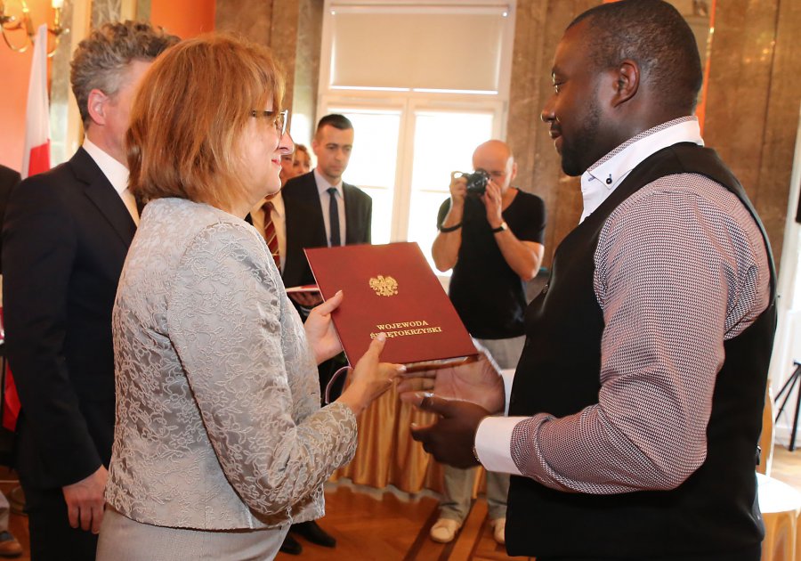Akty nabycia obywatelstwa polskiego wręczyła wojewoda Agata Wojtyszek. W uroczystości w Sali Lustrzanej Wojewódzkiego Domu Kultury w Kielcach wziął udział senator RP Krzysztof Słoń.