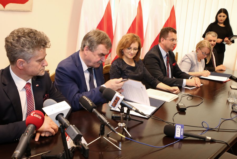 Gośćmi spotkania byli podsekretarz stanu w Ministerstwie Rozwoju Adam Hamryszczak oraz strony podpisywanych umów - prezydent Kielc Wojciech Lubawski i zastępca prezesa Polskiej Agencji Rozwoju Przedsiębiorczości Małgorzata Oleszczuk. Chodzi o dwa projekty - „Rozwój infrastruktury transportu publicznego w Kielcach” oraz „Rozwój komunikacji publicznej w Kielcach”. W ramach pierwszego z nich do Kielc trafi 80 mln zł, a w ramach drugiego 152 mln zł.