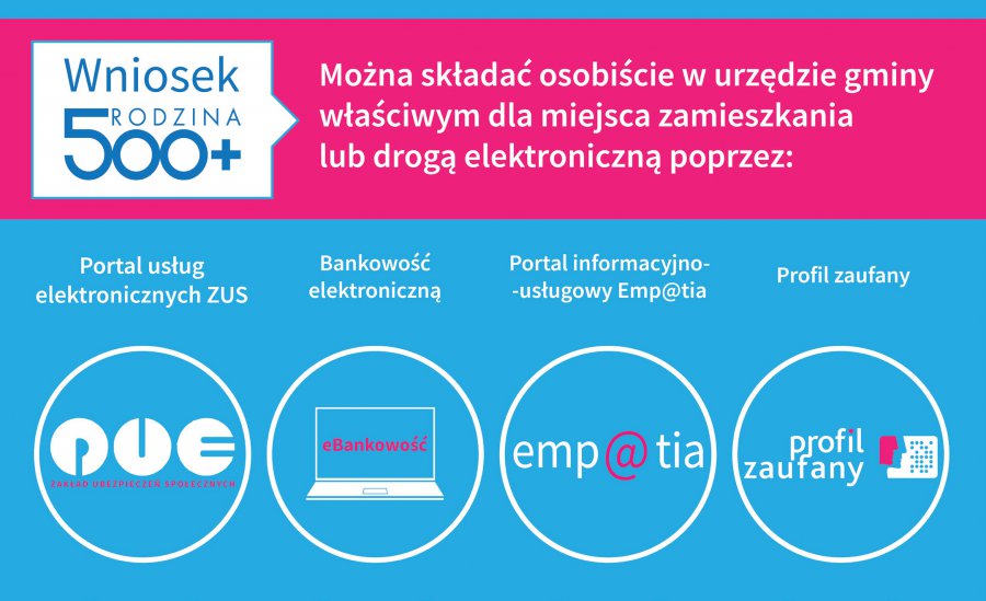 Szczegółowe informacje dotyczące Programu „Rodzina 500+” są dostępne na stronie internetowej Ministerstwa Rodziny, Pracy i Polityki Społecznej www.mpips.gov.pl.