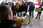 Grupa kilkudziesięciu studentów manifestowała dziś przed budynkiem Świętokrzyskiego Urzędu Wojewódzkiego