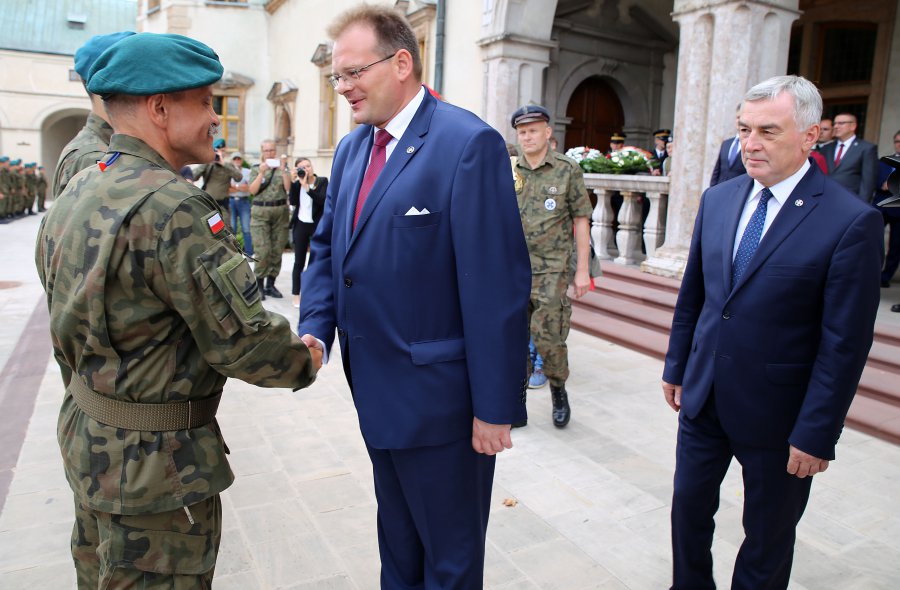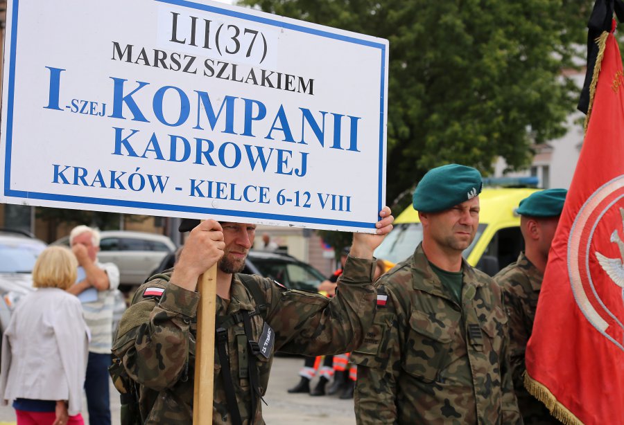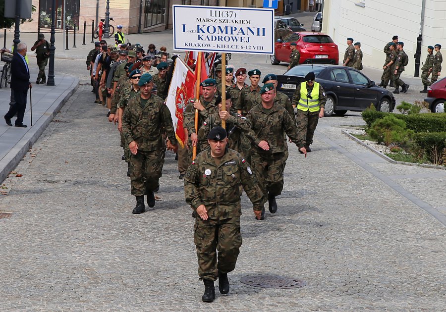 Uczestnicy 52. Marszu Szlakiem I Kompanii Kadrowej wkroczyli do Kielc. Przywitał ich wicewojewoda Andrzej Bętkowski.