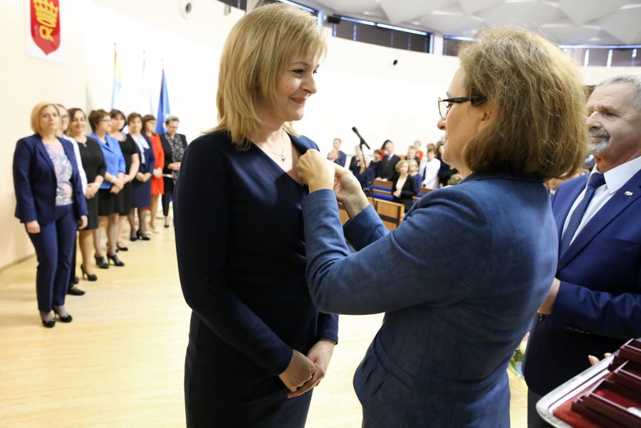 Podczas uroczystości w Świętokrzyskim Urzędzie Wojewódzkim wojewoda wręczyła krzyże zasługi oraz medale za długoletnią służbę.