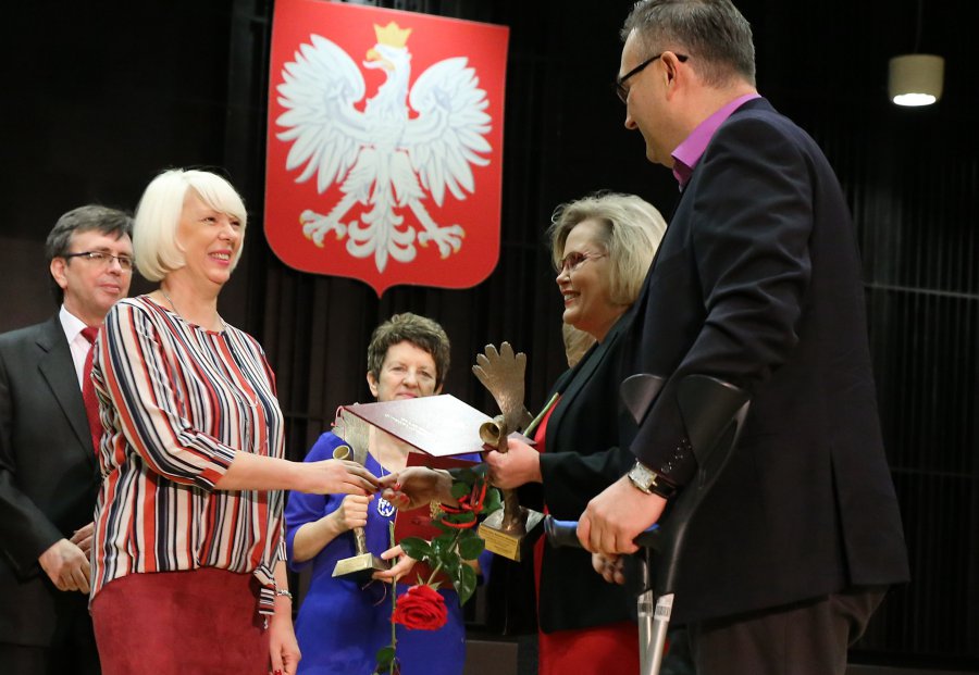 Wręczono trzy statuetki. Otrzymali je: Grażyna Chabior - dyrektor Ośrodka Pomocy Społecznej miasta i gminy Jędrzejów, Alina Rogula - dyrektor Domu Pomocy Społecznej przy ul. Żeromskiego w Kielcach oraz Ewa i Robert Woźniakowie, którzy prowadzą placówkę opiekuńczo-wychowawczą typu rodzinnego w Wójtostwie w gminie Daleszyce.