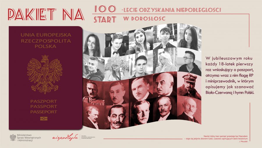 Od 2 stycznia 2018 roku każdy 18-latek wnioskujący po raz pierwszy o paszport otrzyma wraz z nim jubileuszowy pakiet na 100-lecie odzyskania niepodległości.