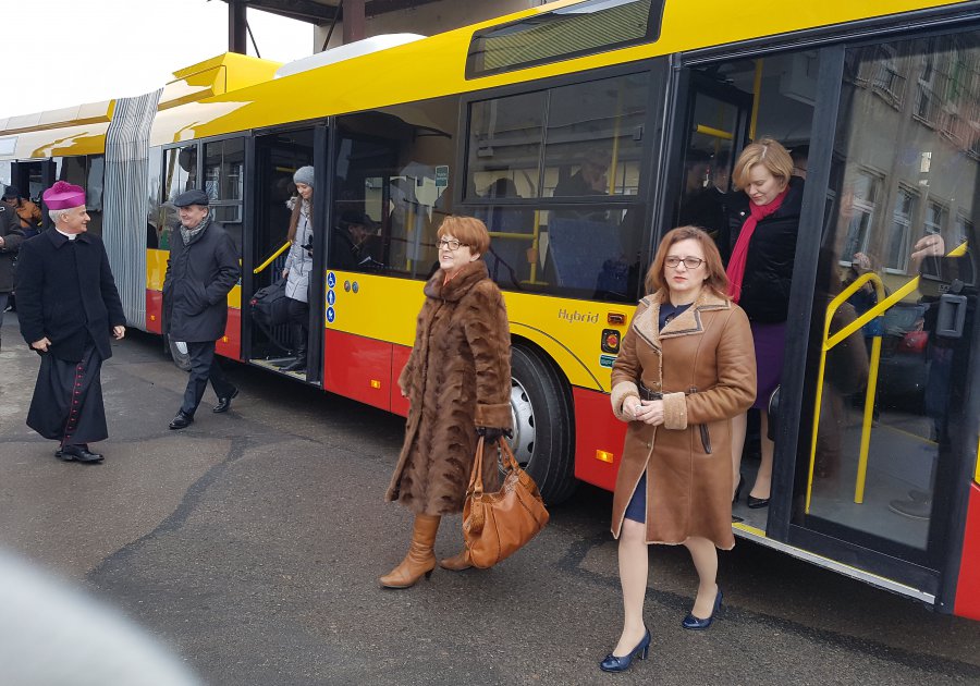 Pojazdy, w zajezdni MPK, poświęcił biskup Marian Florczyk. Odbyła się też pierwsza pokazowa jazda ulicami miasta. Za kierownicą hybrydowego Solarisa zasiadł honorowy przewodniczący Solidarności w MPK, poseł Prawa i Sprawiedliwości Bogdan Latosiński. W uroczystości wzięli również udział inni parlamentarzyści regionu świętokrzyskiego.