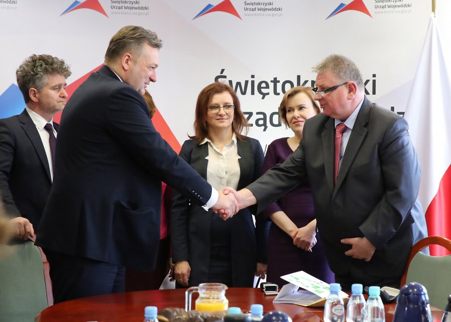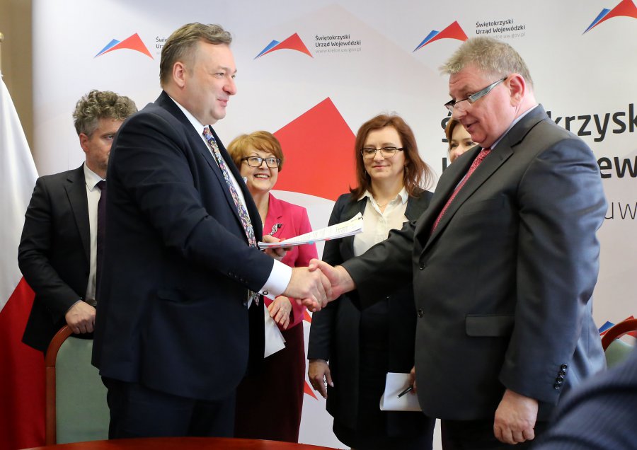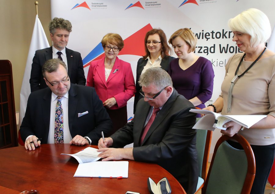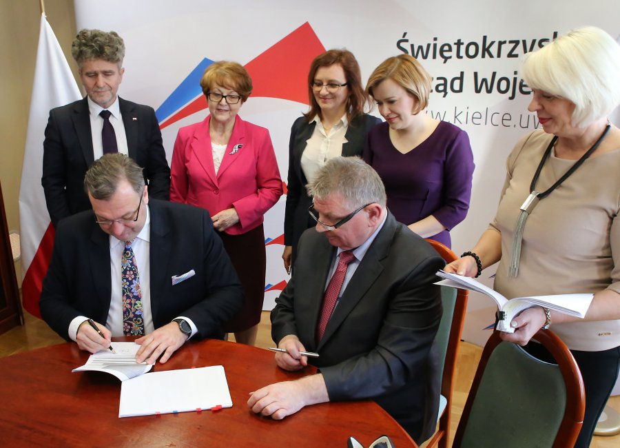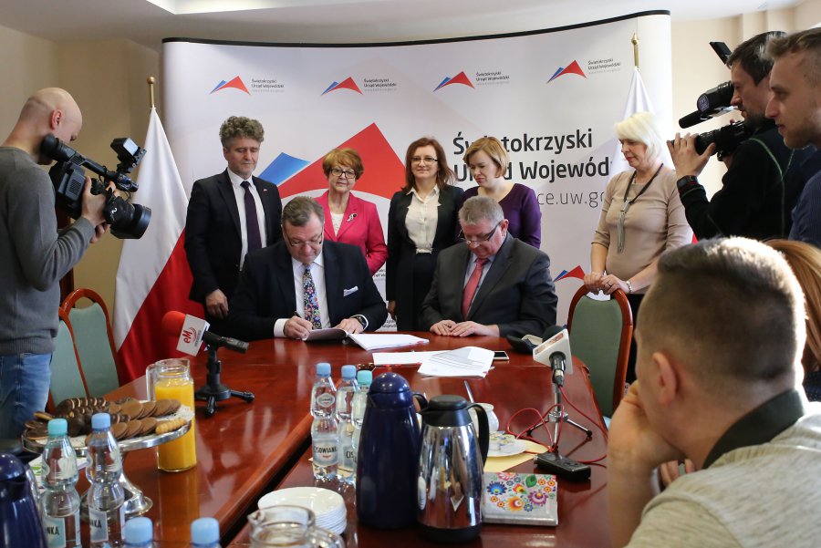 Umowę na dofinansowanie szpitalnych oddziałów podpisał podsekretarz stanu w Ministerstwie Zdrowia Marek Tombarkiewicz z dyrektorem Wojewódzkiego Szpitala Zespolonego w Kielcach Andrzejem Domańskim. Gospodarzem spotkania w urzędzie wojewódzkim była wojewoda Agata Wojtyszek.