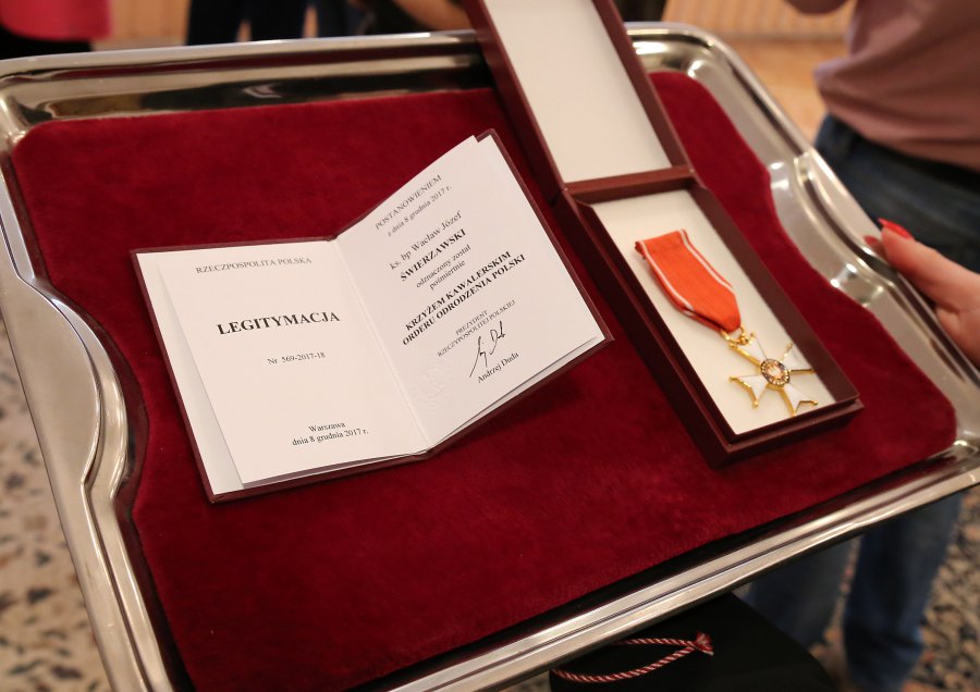 Krzyż Kawalerski został nadany za wybitne zasługi ks. biskupa Wacława Świerzawskiego w pracy naukowej i dydaktycznej oraz za osiągnięcia w pracy duszpasterskiej i społecznej. W uroczystości w urzędzie wojewódzkim wzięli udział świętokrzyscy parlamentarzyści, a także siostry zakonne ze Zgromadzenia Sióstr św. Jadwigi.