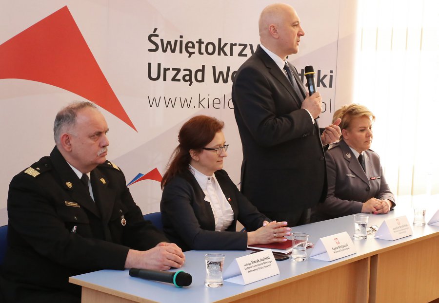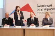 Podczas wizyty w województwie minister Joachim Brudziński spotkał się także z kadrą dowódczą świętokrzyskiej policji oraz straży pożarnej na wspólnej odprawie. Tematyką rozmów było bezpieczeństwo, które dla rządu Rzeczypospolitej Polskiej jest jednym z priorytetów. W odprawie wzięli udział zastępca Komendanta Głównego Policji nadinsp. Helena Michalak oraz zastępca Komendanta Głównego Państwowej Straży Pożarnej nadbryg. Marek Jasiński.