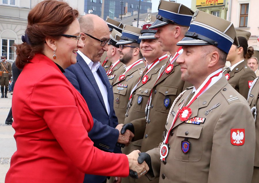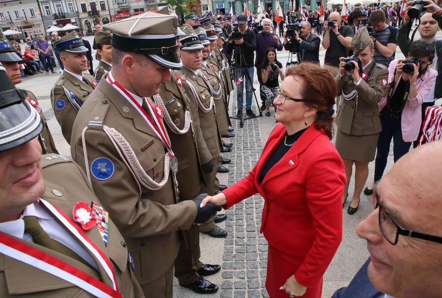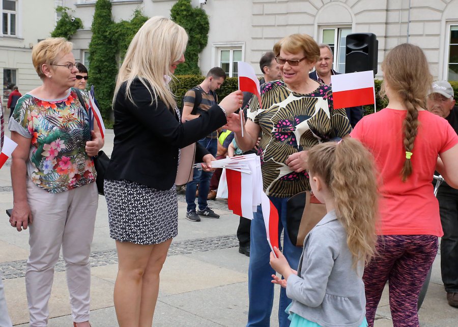 Uroczystości z okazji Dnia Flagi Rzeczypospolitej Polskiej odbyły się na kieleckim Rynku. Uczestniczyła w nich wojewoda Agata Wojtyszek.