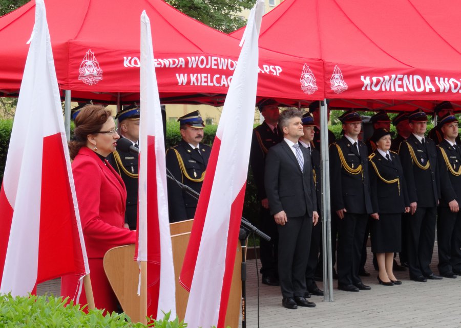 Rano wojewoda Agata Wojtyszek wzięła udział w uroczystości z okazji Dnia Flagi zorganizowanej przed Komendą Wojewódzką Państwowej Straży Pożarnej w Kielcach.