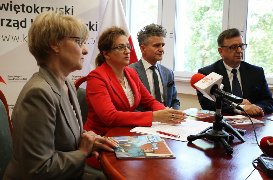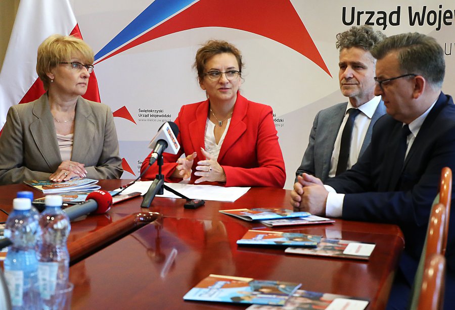 Gośćmi konferencji prasowej wojewody byli Dorota Koczwańska-Kalita, naczelnik kieleckiej delegatury IPN, senator Krzysztof Słoń oraz wicekurator oświaty Tomasz Pleban.