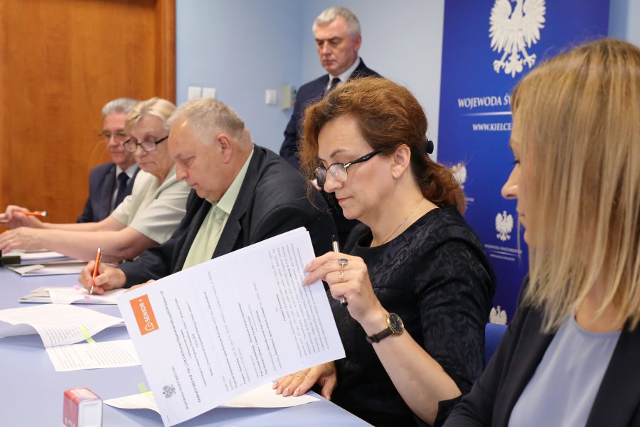 Umowy na utworzenie nowych placówek Senior+ podpisała wojewoda Agata Wojtyszek z przedstawicielami świętokrzyskich samorządów. W spotkaniu wziął udział wicewojewoda Andrzej Bętkowski.