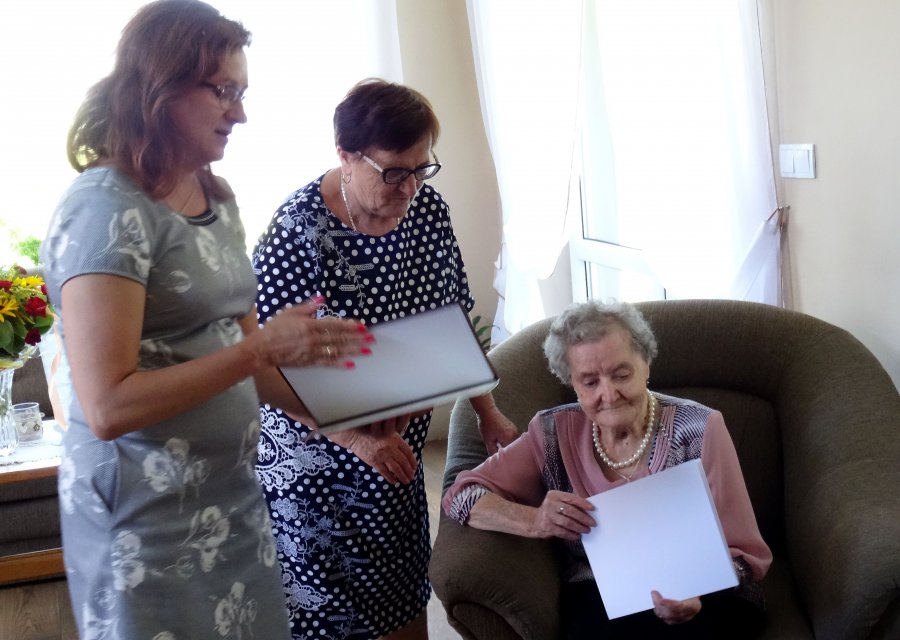 Setną rocznicę urodzin obchodziła pani Marianna Bednarska z gminy Pawłów. Życzenia jubilatce złożyła wojewoda Agata Wojtyszek.