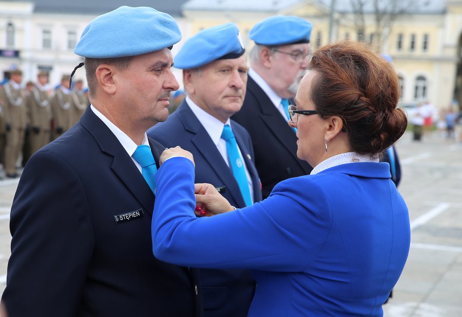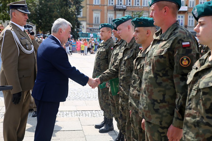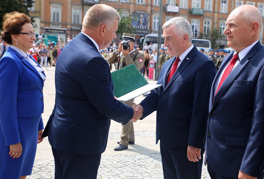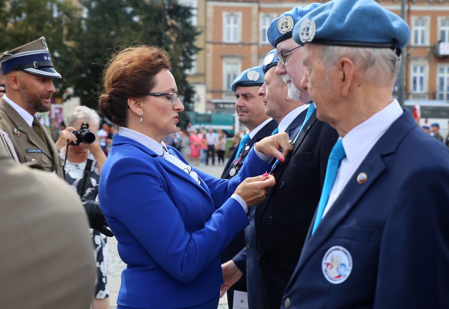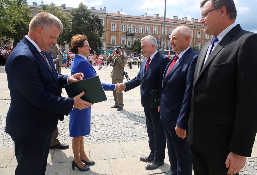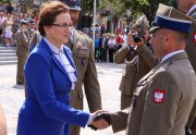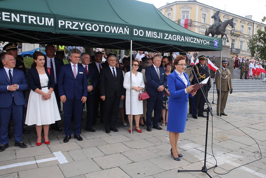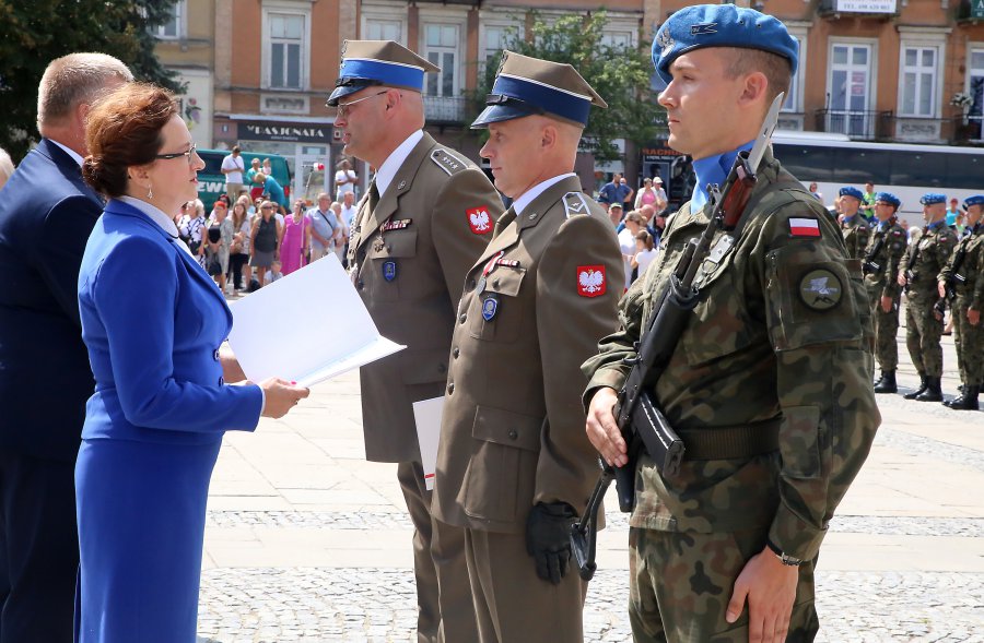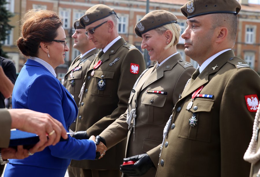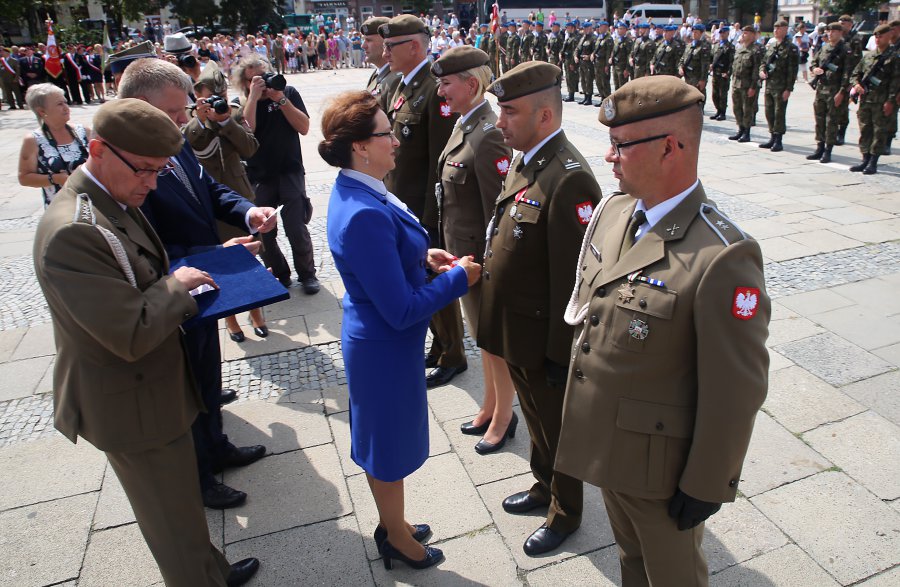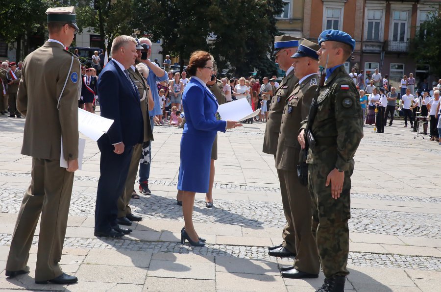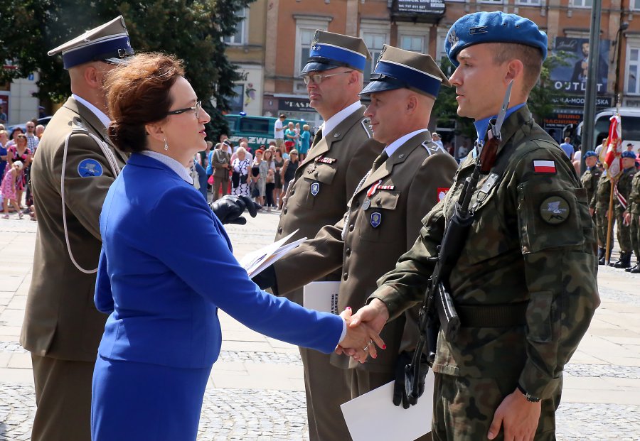 Przed pomnikiem Józefa Piłsudskiego wręczono odznaczenia państwowe, medale, wyróżnienia i nominacje na wyższe stopnie wojskowe. Wojewoda przeczytała list od premiera Mateusza Morawieckiego, skierowany do uczestników kieleckich uroczystości Święta Wojska Polskiego. „Bezpieczeństwo Polski jest efektem zbiorowego wysiłku społeczności wojskowej, także w Kielcach. Nasi żołnierze w tutejszym Centrum Przygotowań do Misji Zagranicznych szkolą się, by ramię w ramię z sojusznikami stać na straży pokoju. Kielce są także domem dla formowanej właśnie Świętokrzyskiej Brygady Obrony Terytorialnej. Wszyscy Państwo, którzy swym wysiłkiem przyczyniacie się do zwiększenia bezpieczeństwa Polaków, zasługujecie na naszą wdzięczność” – napisał premier.