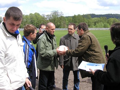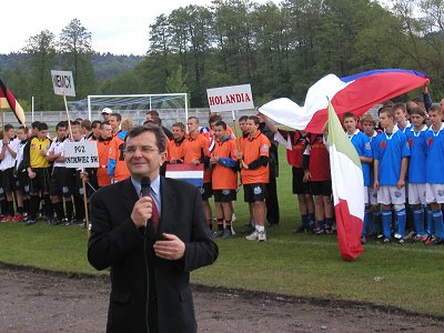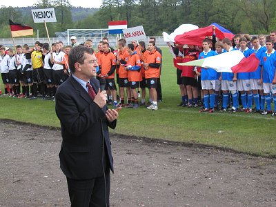 Włodzimierz Wójcik, wojewoda świętokrzyski wziął udział w uroczystym otwarciu finału MINIEURO 2004, które odbyło się na stadionie w Nowinach