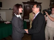 Dziękuję również tym, którzy zabiegają o to, aby upowszechniać i rozwijać czytelnictwo. W dzisiejszych czasach, kiedy statystyki pokazują zmniejszającą się liczbę czytelnictwa wśród dzieci i młodzieży to właśnie biblioteki są szansą powrotu do książki. Wszyscy wiemy, że warto czytać i warto popularyzować czytelnictwo. Społeczeństwa, które już od najmłodszych lat dbają o dobrą edukację młodzieży są nie tylko kreatywne, ale również mają przed sobą lepszą przyszłość - mówił podczas spotkania Włodzimierz Wójcik. Życzenia na ręce dyrektora WBP w Kielcach, Andrzeja Dąbrowskiego złożyli również przedstawiciele Biblioteki Narodowej, Sejmiku Województwa Świętokrzyskiego, Ministerstwa Kultury, kieleckiego Oddziału Związku Literatów Polskich oraz Stowarzyszenia Bibliotekarzy Polskich. Dyrektor Andrzej Dąbrowski nie krył wzruszenia. - Dziękuję wszystkim zebranym za pamięć, życzenia, listy i tak liczne uczestnictwo w dzisiejszej uroczystości - powiedział na zakończenie. - Wszystkim przybyłym gościom i pracownikom jeszcze raz serdecznie dziękuję. Uroczystości odbyły się w Muzeum Narodowym w Kielcach. Srebrnym Krzyżem Zasługi za działalność w upowszechnianiu czytelnictwa uhonorowane zostały: Anna Horodyska, Elżbieta Wiesława Kuklińska, Jolanta Milczarek, Barbara Stanisława Rożek, Teresa Krystyna Sobczak, Jadwiga Stanisława Zielińska. Brązowy Krzyż Zasługi otrzymała Beata Zając. Jubileusz uświetnił koncert muzyków Filharmonii Świętokrzyskiej.