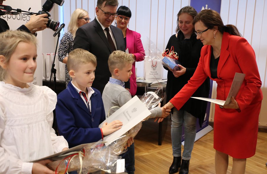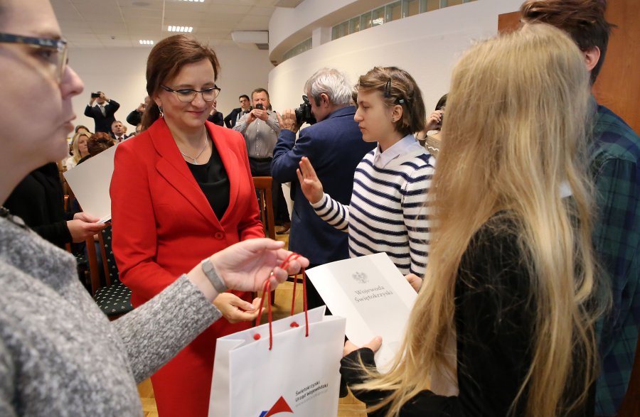 W spotkaniu uczestniczyli przedstawiciele Kuratorium Oświaty w Kielcach, Uniwersytetu Jana Kochanowskiego, Politechniki Świętokrzyskiej oraz Instytutu Pamięci Narodowej – Delegatura w Kielcach. Wojewoda podziękowała także nauczycielom nagrodzonych szkół za wsparcie udzielone ich podopiecznym.