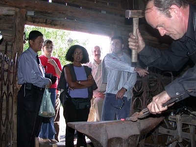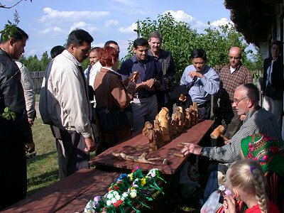 W zagrodzie z Bukowskiej Woli podziwiali ekspozycję rzeźb ludowego twórcy Jana Bernasiewicza z Jaworzni. Mieli również okazję zobaczyć zabytkowy dwór z Suchedniowa, organistówkę z Bielin oraz dom szewca z Daleszyc. Szczególne zainteresowanie wzbudziły pokazy twórczości ludowej. Najwięcej czasu oficerowie spędzili w zabytkowej kuźni, gdzie mistrz kowalski wykuwał dawnymi metodami żelazne precjoza. Wojewoda podarował gościom plakat Rafała Olbińskiego "Świętokrzyskie w Unii Europejskiej" - Mam nadzieję, że praca ta będzie przypominać Wam o naszym regionie - powiedział.