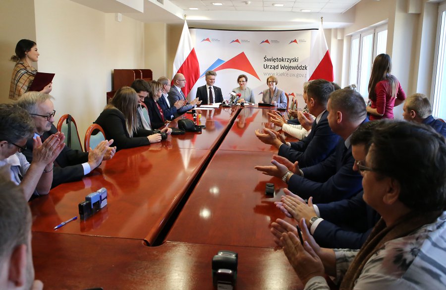 Z samorządami Buska-Zdroju, Nowej Słupi oraz Opatowa zawarte zostały umowy na dofinansowanie z rezerwy celowej MSWiA pięciu zadań związanych remontem dróg gminnych – łączna kwota wsparcia wynosi 1 380 979 zł. Ponadto w ramach Rządowego Programu na Rzecz Wsparcia oraz Konkurencyjności Regionów podpisane zostały umowy z gminami Chmielnik i Wiślica – łączna kwota dotacji: 756.357 zł. Wojewoda przekazała także samorządowcom z gminy Obrazów rządową promesę na remonty dwóch dróg - dofinansowanie wynosi 409 000 zł. W spotkaniu w urzędzie wojewódzkim wzięli udział świętokrzyscy parlamentarzyści.