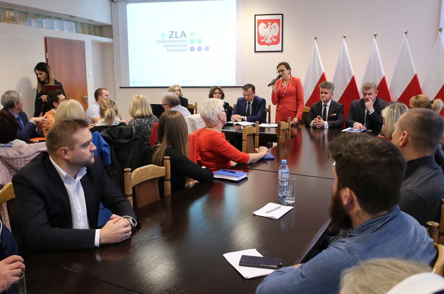 Zasady wprowadzania elektronicznych zwolnień lekarskich e-ZLA przedstawił w Kielcach wiceminister rodziny, pracy i polityki społecznej Marcin Zieleniecki. Gospodarzem spotkania w urzędzie wojewódzkim była wojewoda Agata Wojtyszek.