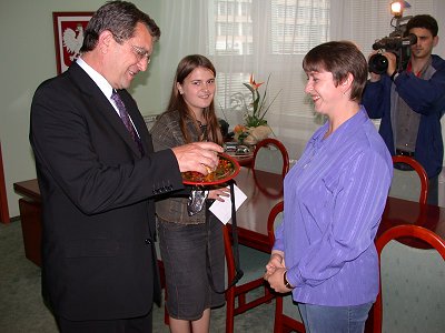 Wizyta w urzędzie to jeden z punktów czterodniowego pobytu młodych ludzi w naszym województwie. Przodkami młodzieży z Wierszyny są polscy zesłańcy, których losy sięgają początków XX wieku. Większość z nich wywodzi się właśnie z województwa świętokrzyskiego, głównie z terenów Jędrzejowa, Strawczyna, Kielc i Chęcin. Obecność na świętokrzyskiej ziemi jest więc doskonałą okazją dla młodych gości, by poznać jej uroki oraz miejsca, gdzie żyli ich dziadkowie. - Chcemy dowiedzieć się czegoś więcej o tradycji, historii i obyczajach regionu, z którym związani byli nasi przodkowie. Podróż była bardzo męcząca, ale warto było - powiedziały zgodnie siostry Tania i Ola. Głównymi organizatorami wizyty są Stowarzyszenie Wspólnota Polska oraz Real Kielce. Pomoc zaoferował wojewoda świętokrzyski w porozumieniu z Waldemarem Kowalskim, konsulem Polski w Irkucku. - Już od dłuższego czasu wraz z konsulem próbowaliśmy zorganizować to przedsięwzięcie. Cieszę się, że nareszcie się udało. Zrobimy wszystko, żebyście się dobrze u nas czuli i zobaczyli kawałek historii waszych przodków - powiedział podczas spotkania Włodzimierz Wójcik. W Świętokrzyskim Urzędzie Wojewódzkim młodzi ludzie mieli okazję zwiedzić Centrum Zarządzania Kryzysowego Wojewody. Obejrzeli także wystawę fotografii regionalnej w "Okrąglaku" oraz panoramę Kielc z ósmego piętra budynku. Na koniec zjedli obiad w urzędowej stołówce. Piątek młodzież ma spędzić w Sandomierzu, gdzie planowany jest m. in. rejs po Wiśle, zwiedzanie Muzeum w Zamku Kazimierzowskim oraz spacer po starówce. W sobotę zobaczą Muzeum im. Przypkowskich w Jędrzejowie, klasztor Cystersów oraz ruiny zamku w Chęcinach. Odwiedzą także Jaskinię Raj. Niedzielę spędzą u ojców Oblatów na Świętym Krzyżu.