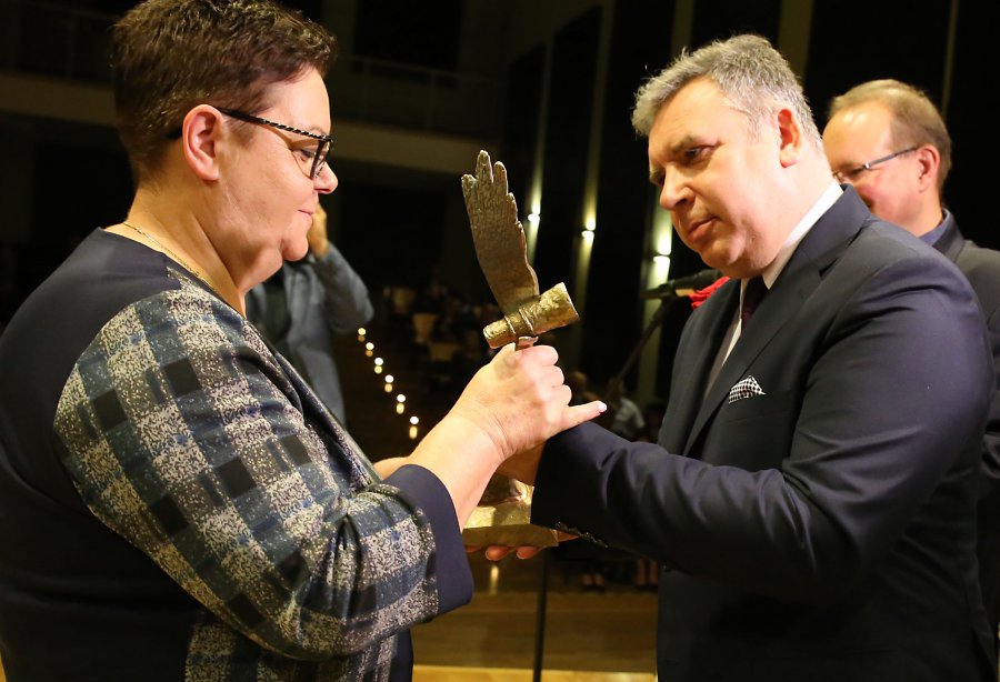 Wojewoda Agata Wojtyszek uhonorowała zasłużonych pracowników pomocy społecznej z naszego regionu. W imieniu wojewody statuetki wręczył dyrektor generalny urzędu wojewódzkiego Paweł Lubieniecki.