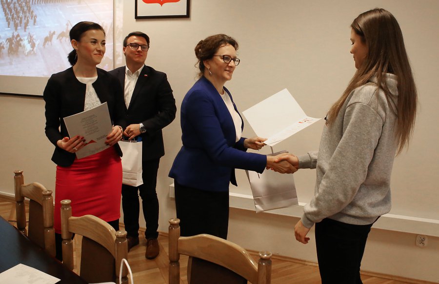 Wszyscy uczniowie, którzy włączyli się w organizację wojewódzkich obchodów Święta Niepodległości w Kielcach, których gospodarzem była wojewoda Agata Wojtyszek otrzymali pamiątkowe dyplomy oraz gadżety Świętokrzyskiego Urzędu Wojewódzkiego w Kielcach. Wojewoda podziękowała uczniom obecnym na kieleckim Placu Wolności podczas oficjalnych uroczystości 11 listopada.