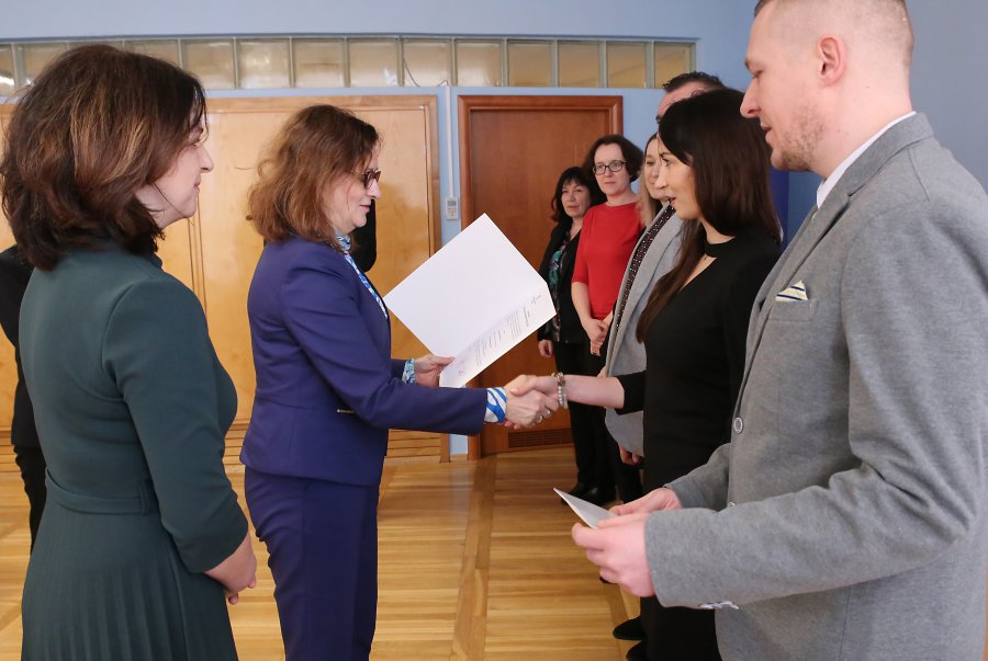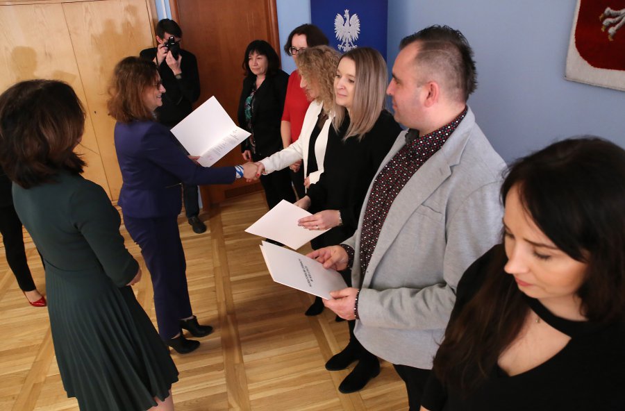 Akty nadania stopnia awansu zawodowego nauczyciela dyplomowanego wręczyła wojewoda Agata Wojtyszek wraz z wicekurator oświaty Katarzyną Nowacką.