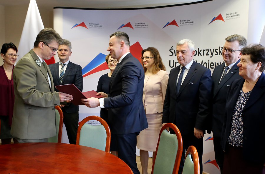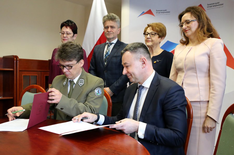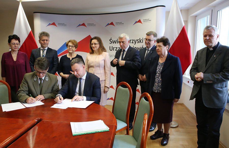 Umowę użyczenia działki ze znajdującym się niej pomnikiem Trzech Krzyży Katyńskich zawarł Świętokrzyski Park Narodowy z gminą Bieliny. Gospodarzem spotkania była wojewoda Agata Wojtyszek.