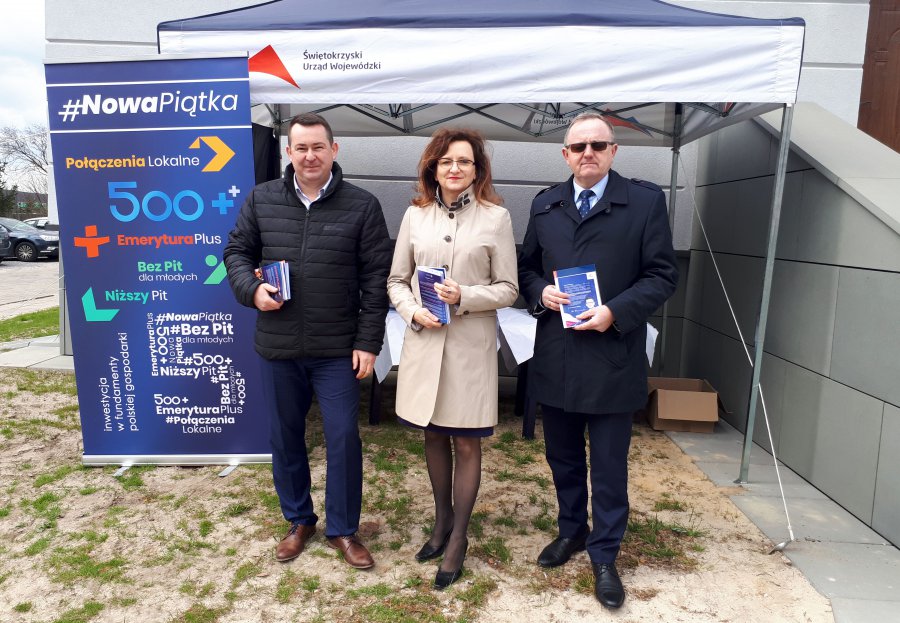 Pracownicy urzędu wojewódzkiego prowadzą spotkania informacyjne dla mieszkańców świętokrzyskich gmin. Rozdawane są ulotki oraz broszury dotyczące programów wchodzących w skład pakietu #Nowa Piątka. Dziś takie spotkania zorganizowano także w Radkowie oraz Moskorzewie.