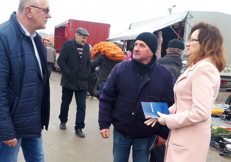 Pracownicy urzędu wojewódzkiego prowadzą spotkania informacyjne dla mieszkańców świętokrzyskich gmin. Rozdawane są ulotki oraz broszury o programach wchodzących w skład pakietu #Nowa Piątka.