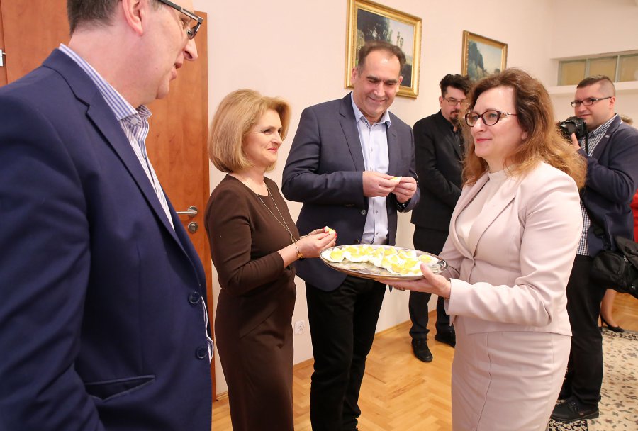 Z parlamentarzystami ziemi świętokrzyskiej oraz dziennikarzami spotkała się przy tradycyjnym wielkanocnym stole wojewoda Agata Wojtyszek.