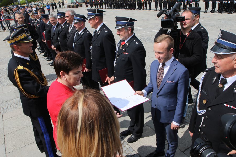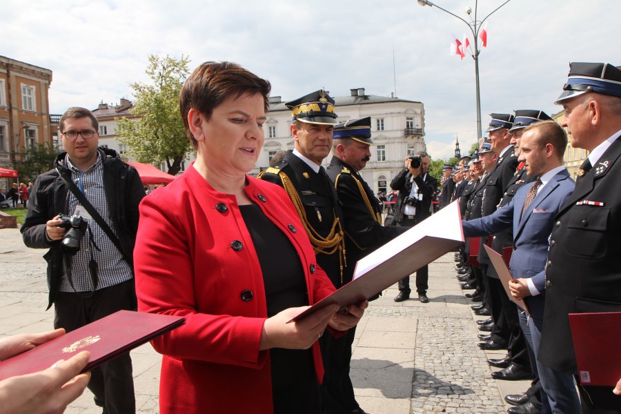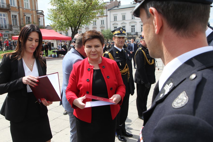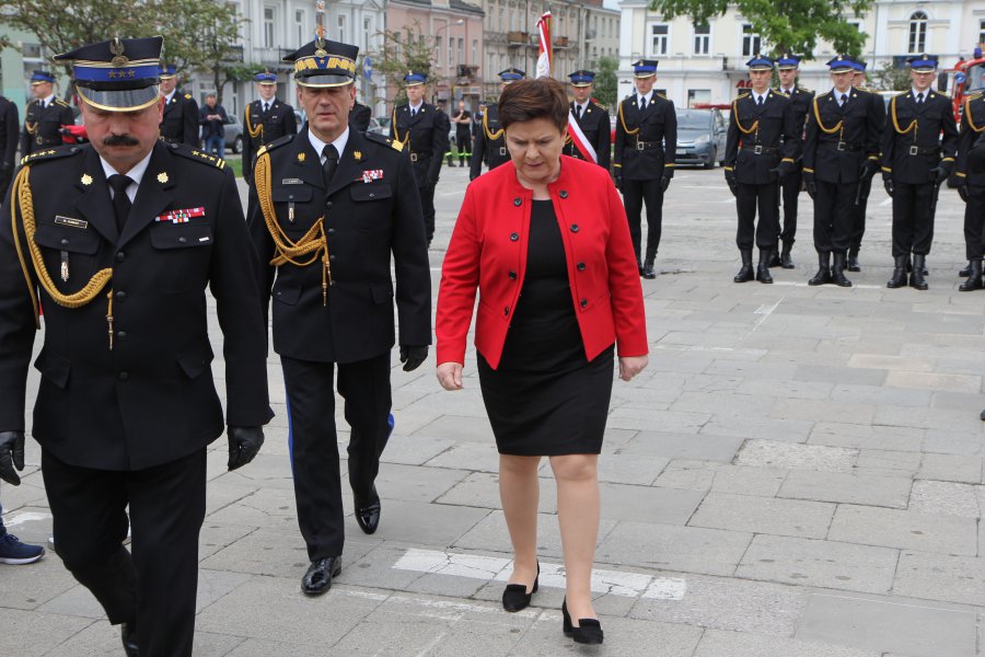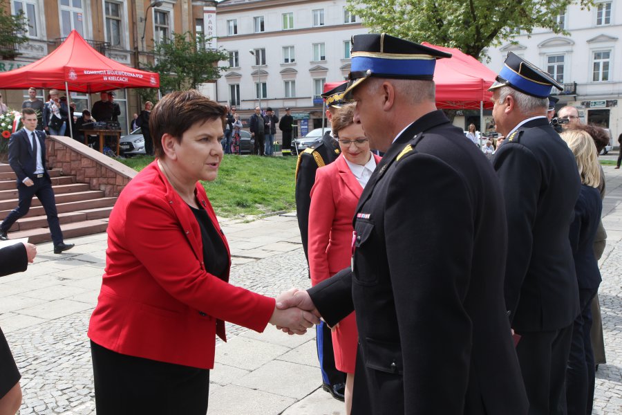 Wiceprezes rady ministrów Beata Szydło, wojewoda świętokrzyski Agata Wojtyszek oraz wicewojewoda Bartłomiej Dorywalski uczestniczyli w Wojewódzkich Obchodach Dnia Strażaka w Kielcach.