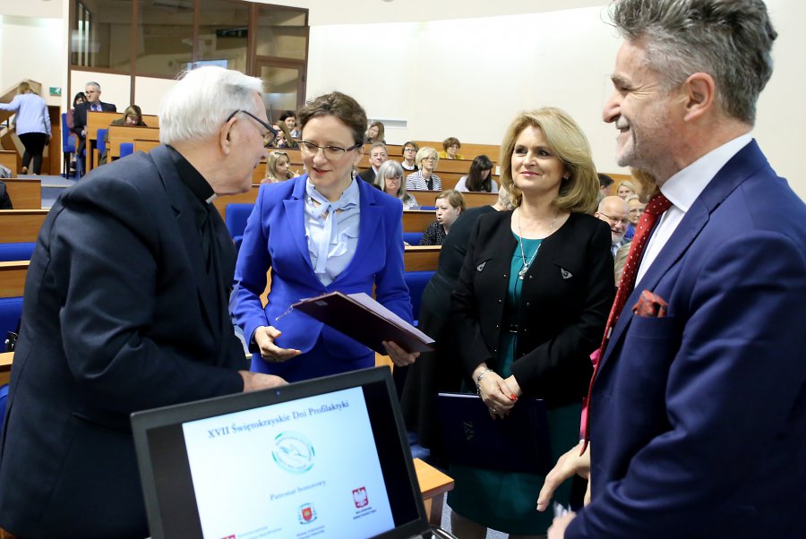 - To konferencja poświęcona rodzinie. W tym roku chcemy się skupić na aspekcie rodziny w tworzeniu państwa polskiego po odzyskaniu niepodległości – na tym, jak ważna była rodzina i co państwo robiło, aby tę rodzinę wspierać. Ostatnie lata pokazały, że rząd bardzo poważnie traktuje rodzinę, mamy szereg programów skierowanych do rodziny. Dziś chcemy mówić między innymi o trudnych sytuacjach związanych z „Niebieską Kartą” czy o substancjach psychoaktywnych, które są ogromnym zagrożeniem, szczególnie dla młodych ludzi. Te nasze spotkania skierowane są do rodziny i do instytucji, które z rodziną pracują – mówiła wojewoda Agata Wojtyszek. XVII Świętokrzyskie Dni Profilaktyki objęła patronatem honorowym wicepremier Beata Szydło, która skierowała list do uczestników konferencji.